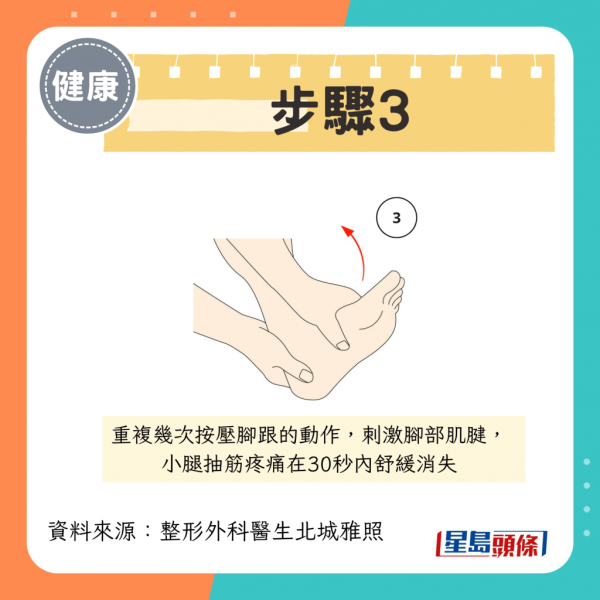 當出現突發抽筋時,北城醫生建議執行「腳跟按壓法」: