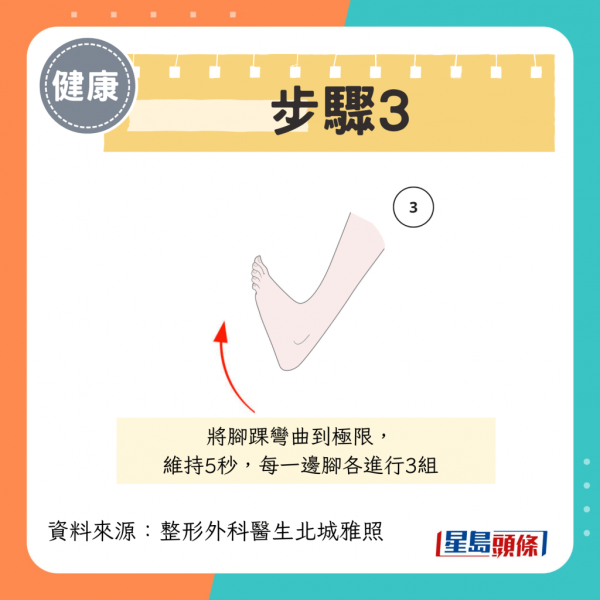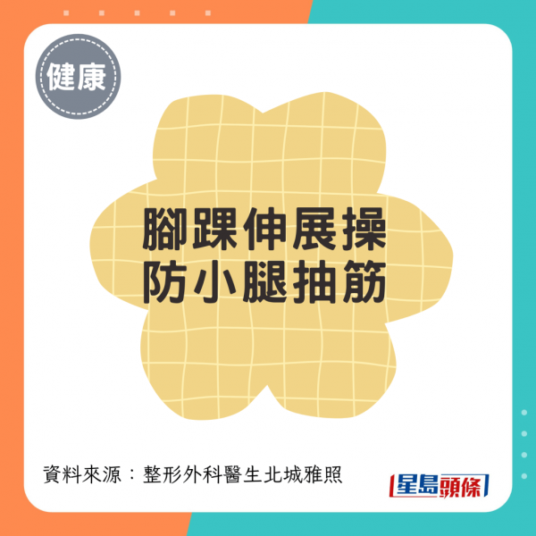 另外,北城醫師推薦「腳踝伸展操」,每日雙腳做1分鐘,預防小腿抽筋: