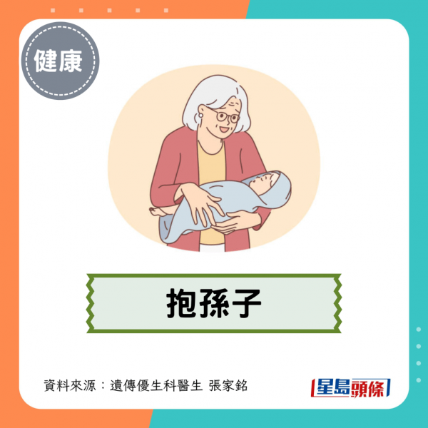 新正頭,大家都會出動拜年、拜訪親友,特別是讓長輩們抱抱可愛的孫子孫女,樂也融融。有醫生指出,長者抱孫或做一些簡單的家務有益他們的健康,最好是把運動訓練融入日常生活,不需要複雜的器材,也能輕鬆增加身體活動量,增強肌肉力量,減低受傷或者患上各種慢性病的風險。銀髮族也能越練越強。