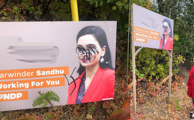 【星島綜合報道】卑詩新民主黨維農-莫拿士(Vernon-Monashee)選區候選人桑杜(Harwinder Sandu)的競選標語日前遭人用性別歧視和納粹十字記號塗鴉。對此,桑杜表示感到非常惡心。