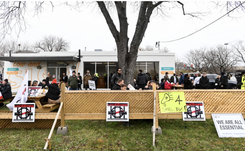位於怡陶碧谷區伊利沙伯女王大道( Queen Elizabeth Blvd)7號的Adamson Barbecue餐廳分店,周二公開挑戰安省和多倫多市的封城法令,開門歡迎食客前往餐房內進膳,遭多倫多首席衛生官責令關門。不過,該餐廳東主斯凱利(Adam Skelly)周三再次公開挑戰法令,開門接客。有現場傳出的錄像顯示,餐廳內一度聚集數十名食客,其中許多人沒有戴口罩,幾乎是前一天場景的重演。