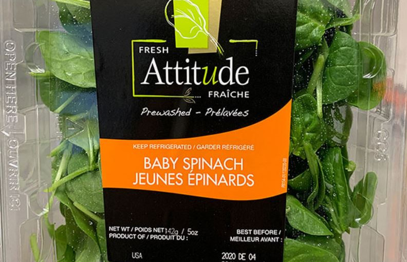加拿大食品檢驗局(CFIA)宣布,生產商Vegpro國際,需要回收Fresh Attitude品牌的嬰兒菠菜產品,且呼消費者不要食用,若果已生病,應立即聯絡醫生。