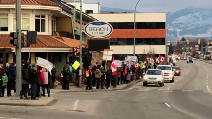 上周六下午,多達1,000人在基隆拿市中心參加名為「奧卡納根大型集會」(Okanagan Mega Rally),反對防疫措施。集會海報寫道,「我們要求自由、真實、透明和選擇;我們反對專制、說謊和新常態。
