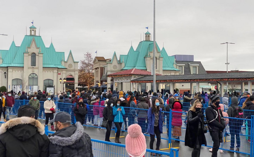 【星島記者報道】今年節禮日(Boxing Day)適逢周六,大批民眾無懼第二波疫情及濕冷天氣湧入大溫各大商城購物。有市民稱凌晨4時30分便抵達商城排隊等候,同時稱讚折扣不錯「值得等」。除了進入各商家店鋪需要大排場龍外,有些商城甚至需要在外圍排隊才能入內,記者午時看到在停車場「打蛇餅」等候入內的至少有四、五百人。