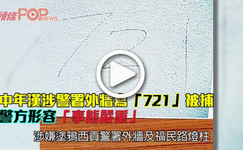 中年漢涉警署外牆寫「721」被捕 警方形容「事態嚴重」