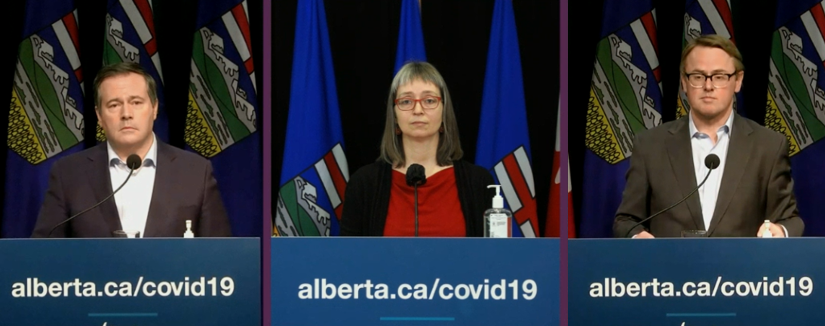 1月29日,亞省省長康尼(Jason Kenney)、亞省衛生部首席醫療官Deena Hinshaw及亞省衛生廳長Tyler Shandro出席在新聞發布會。康尼宣布,將於2月8日(周一)放寬對餐館和體育館等部分企業的限制。