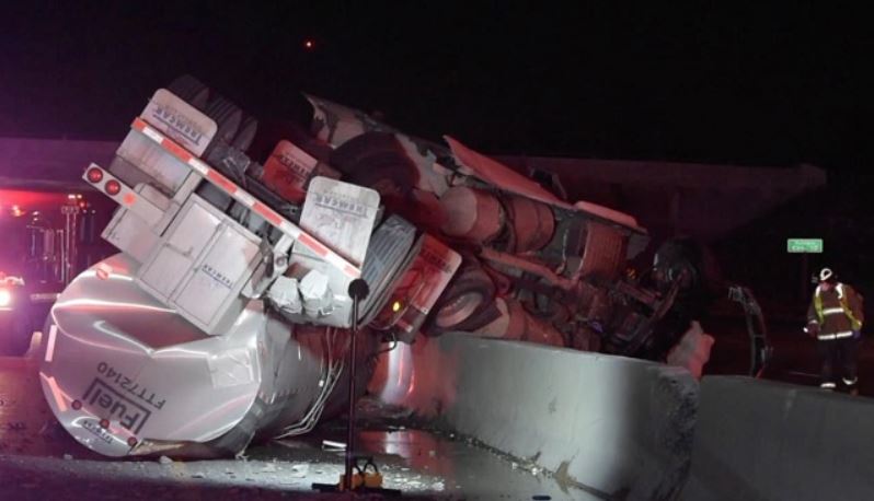 【星島綜合報道】401號高速公路近Cambridge路段發生交通意外,2輛汽車發生碰撞後阻塞行車線,隨後1輛裝有葡萄酒的貨櫃車試圖轉線避開,但失控全車翻側,且翻越對頭行車線,令東西行6條行車線一度被封。