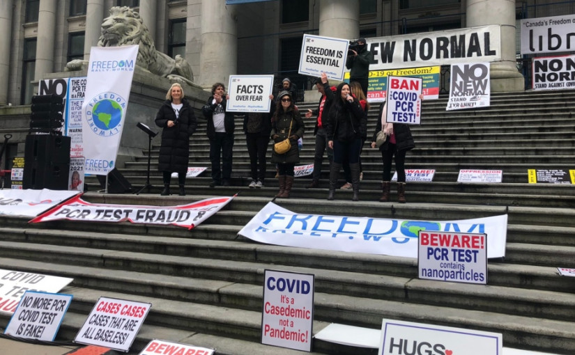 據CTV報道,在聯邦衛生官員剛在一天前發出警告,新冠變種病毒可能導致病例數激增,不過,周六仍有200名示威者聚集在溫市中心美術館前舉行號稱「卑詩省大型自由集會」,反對戴口罩並宣揚新冠陰謀論。
