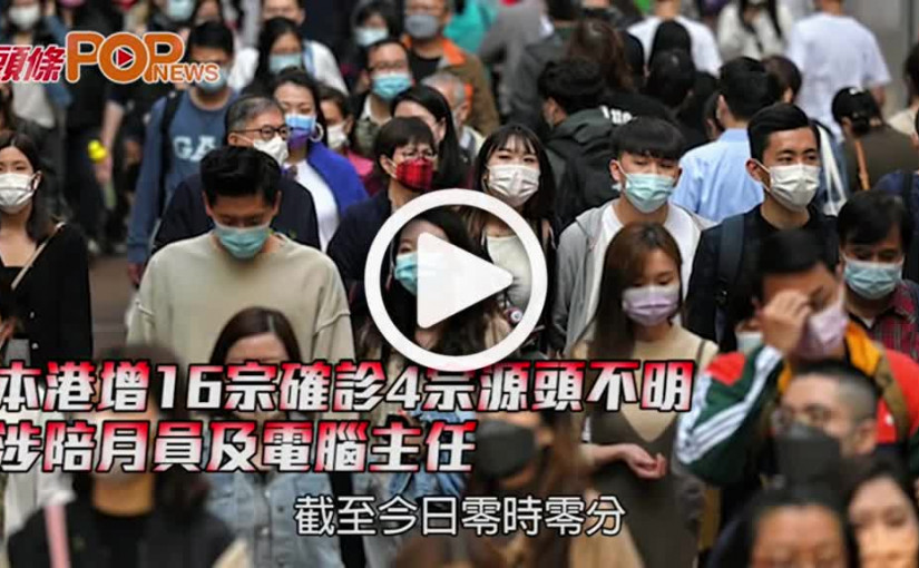 本港增16宗確診4宗源頭不明 涉陪月員及電腦主任