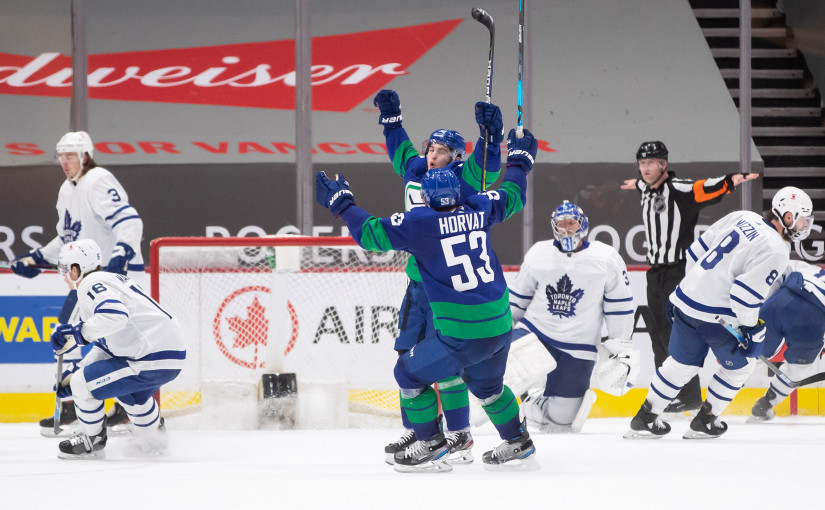加人隊隊長霍瓦特(Bo Horvat)在第三節8分49秒建功,將比分板平;接著,米勒(J.T. Miller)和霍格蘭德(Nils Hoglander)又先後攻破客隊球門,最終加人隊以4:2戰勝楓葉隊。