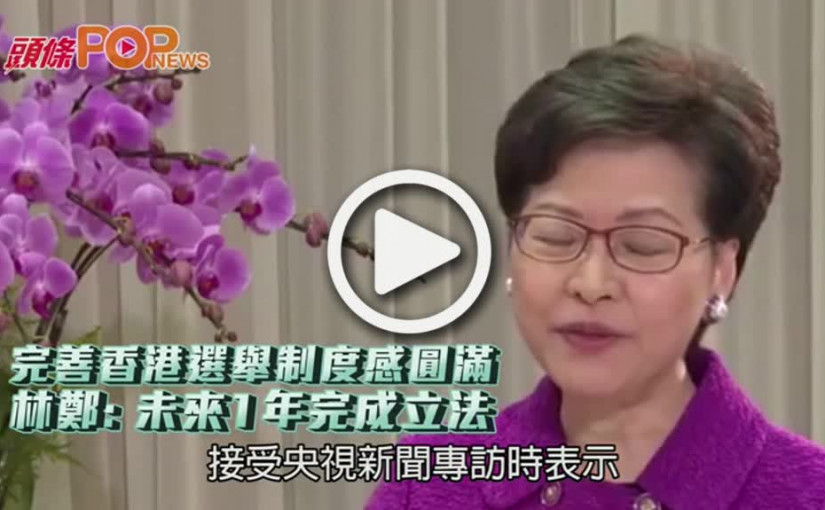 完善香港選舉制度感圓滿 林鄭: 未來1年完成立法