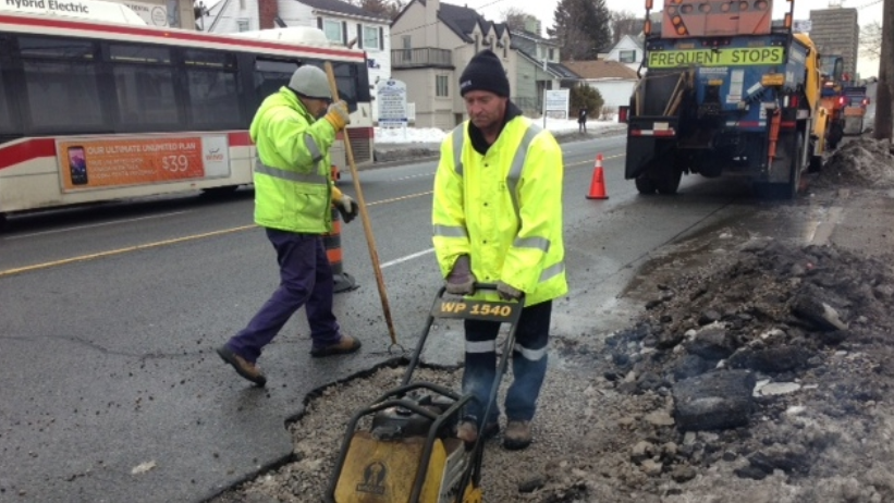 多倫多市今天參與坑洞修補的員工有約127名。市府說,自1月1日以來,已經修補了近3萬個坑洞。