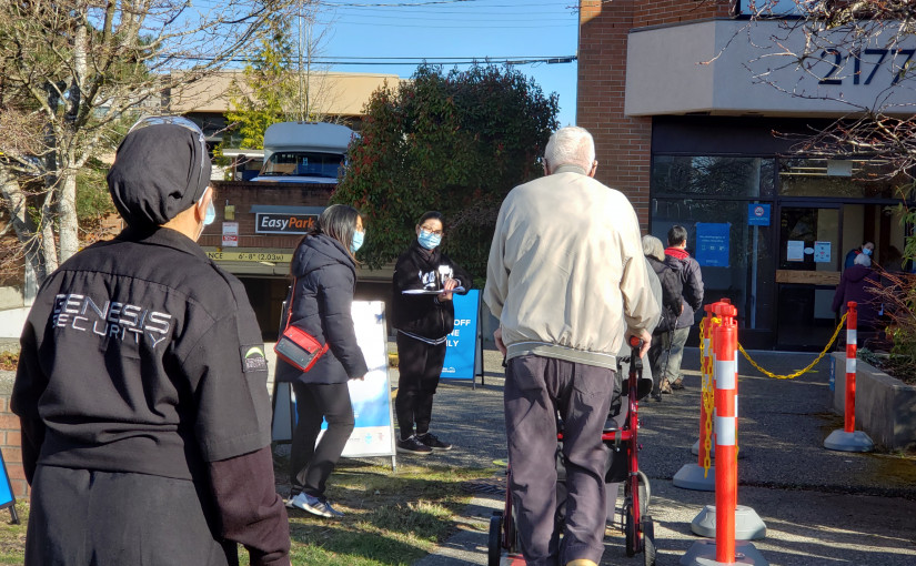 【星島記者陳儀芬報道】周一起,卑詩省指定的疫苗注射中心開始陸續為90歲以上的長者和65歲以上原住民施打疫苗。接受疫苗注射的長者均對疫苗注射感到滿意,雖然在預約時有人遇上了麻煩,但實際注射過程很順利。有陪伴父母親來注射的民眾稱,希望省府加緊速度,自己也能很快排上疫苗注射。