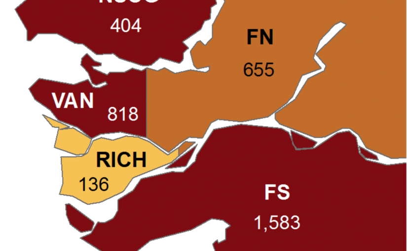 據卑詩疾控中心的數據顯示,列治文每天發現5至10宗病例,而溫哥華每天發現10至15宗病例。