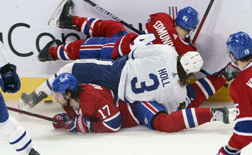 (星島綜合報道)北美冰球NHL多倫多楓葉隊( Maple Leafs )看來一帆風順之際,周一晚上的比賽卻以2比4輸給了滿地河國民隊(Canadiens),並得到「雙斷纜」的不愉快經歷。