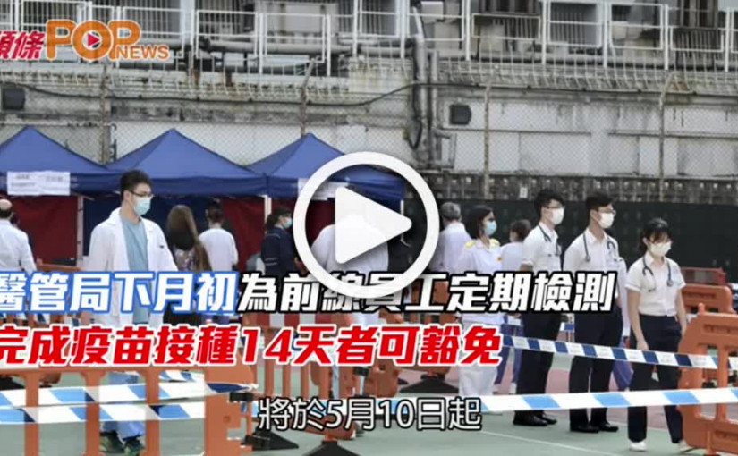 醫管局下月初為前線員工定期檢測 完成疫苗接種14天者可豁免