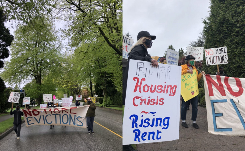 菲普斯(Sean Phipps)是道恩大道租客組織(Dow Avenue Tenants Group)集會的組織者,該集會於星期日在開發商業主位於溫哥華西區桑尼斯(Shaungessy)高檔住宅外舉行。
