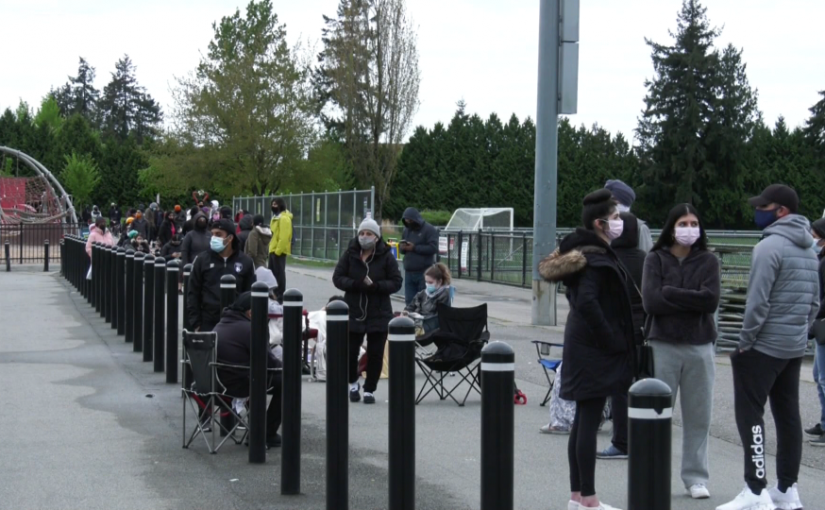 據CTV報道,素里臨時疫苗注射站周三為18歲以上人士提供輝瑞疫苗,引發大批市民周四趕來試運氣。從清晨4時開始,設在素里紐頓運動公園(Newton Athletic Park)和熊溪公園(Bear Creek Park)的臨時疫苗注射站,就有許多人陸續前來排隊。