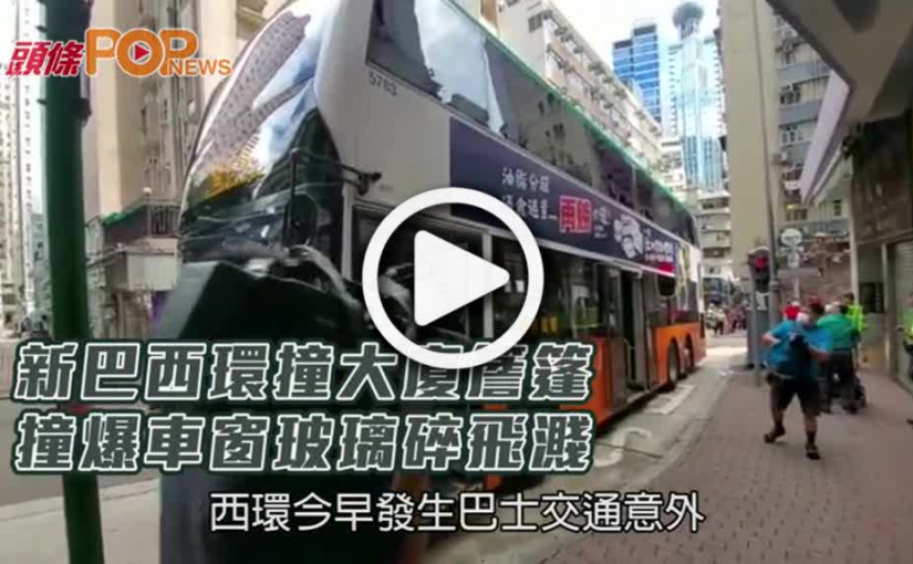 新巴西環撞大廈簷篷 撞爆車窗玻璃碎飛濺