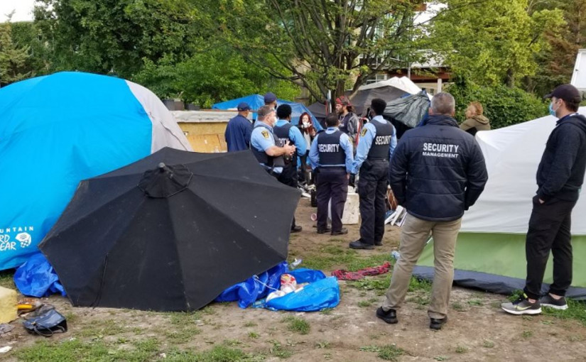 市府於上月清理位於King街西與Dufferin街附近Lamport運動場的1個露宿者居住地點時,發生暴力衝突,3名警員受傷,1名男子被控襲擊警員。