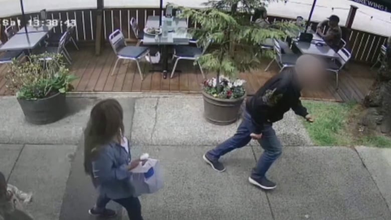圖片:監控視頻顯示,一名男子吃完「霸王餐」拔腿就跑。CBC