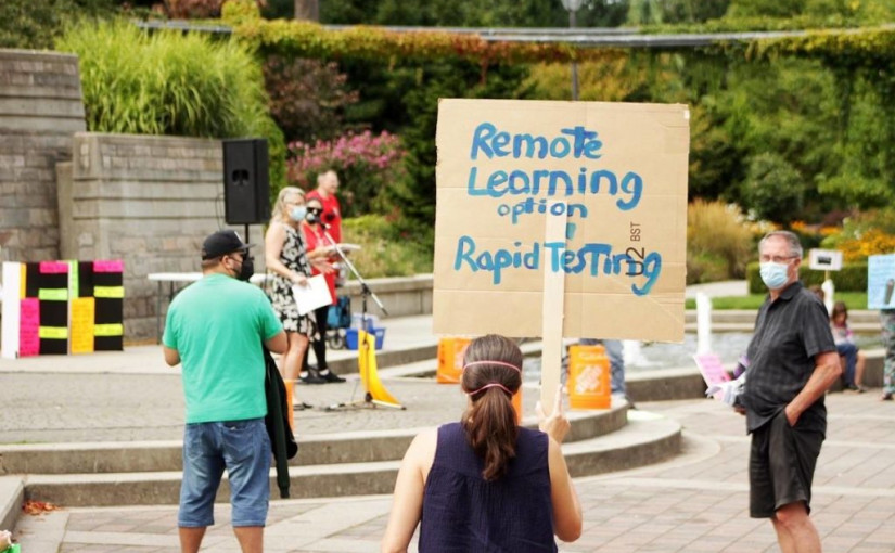 卑詩安全學校聯盟(Safe Schools Coalition BC)表示,選擇在素里舉行集會,是這裏的學區在上一學年受到疫情的嚴重衝擊。該組織呼籲在本省學校強制要求所有幼稚園至12年級學生戴口罩,改善所有教室的通風系統和空氣監測,並為無法返回校園的學生提供遠程學習選項。