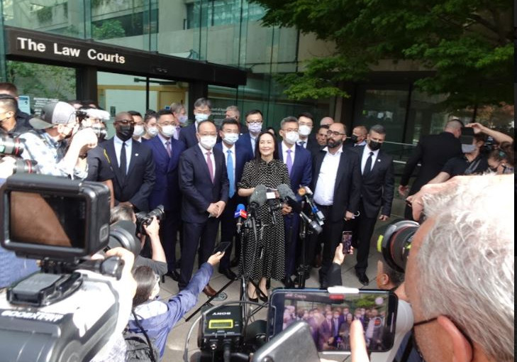 周五同日下午孟晩舟在溫哥華出庭,代表政府的律師申請中止引渡孟晚舟到美國的聆訊,得到卑詩最高法院副首席大法官霍姆斯(Heather Holmes)接納,正式中止引渡聆訊,並取消孟晩舟的保釋條件。