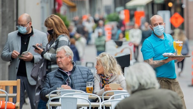 圖片:魁省活躍病例數下降,更多滿地可市民外出用餐。加通社