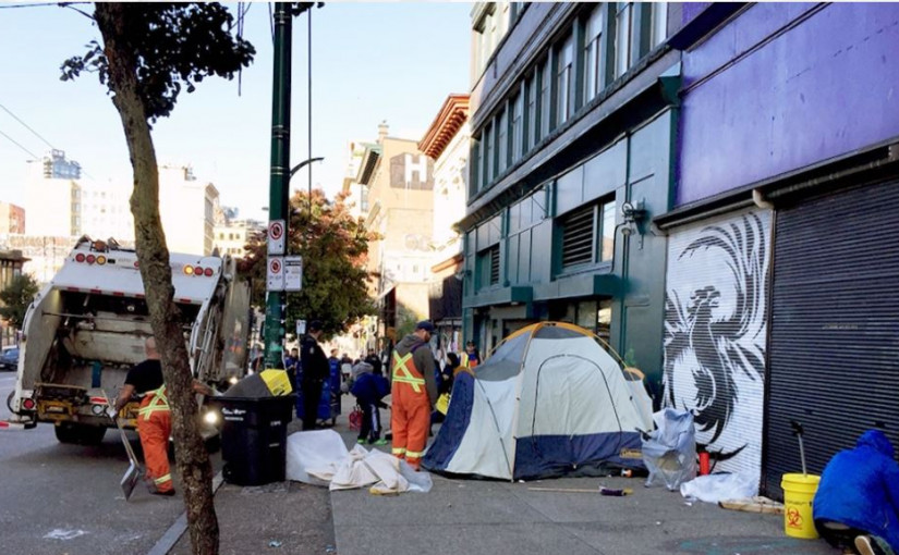 該區一群居民及為露宿者爭取權益的人士周五早上舉行記者會,譴責溫哥華市府清潔街道時,針對在喜士定東街的露宿者,指市政工作人員在警員的陪同下,在該區逐個路段收集放在行人道的所有物品,然後棄於垃圾車內。