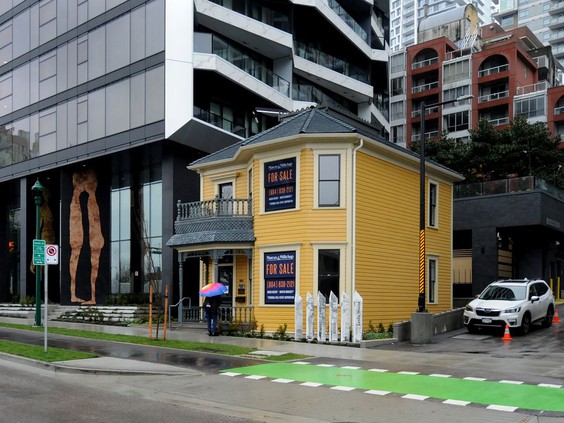 位於溫市中心Pacific St.885號的高層柏文大樓旁,一棟黃色1400平方英呎的兩層住宅房屋引人注目。該建築由萊斯利(George Washington Leslie)於1888年左右建造,用作住宅,原址位於漢比街(Hornby St.)1380號。後來這棟房子還曾用於室內設計工作室以及時裝屋,也曾於數十年內被il Giardino餐廳老闆蒙吉 (Umberto Menghi)用於開餐廳,成為眾所周知的「小黃屋」。