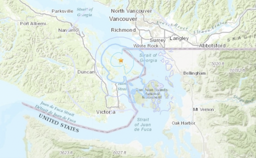 加拿大地震管理局表示,這次地震是在凌晨4時15分在杜華遜(Tsawwassen)西南22公里處錄到的。有關當局指,目前尚未收到任何傷亡報告。
