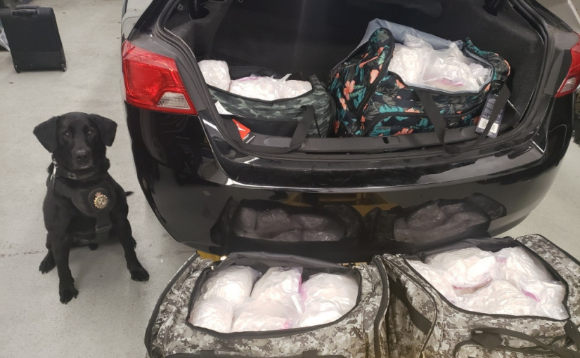 邊境局周三公布,去年10月在素里和平拱門關卡截查一輛由美國入境的車輛時,司機突然加速逃跑,皇家騎警隨即加入追捕,成功截獲可疑司機,在其車上檢獲大量已包裝的白色粉狀物體,緝毒犬即時證實為毒品。