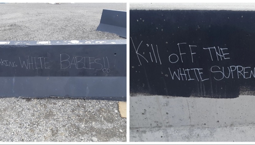 卡加利警方仇恨犯罪部門正調查沿著西南17大道繪製的塗鴉。警方稱西南17大道1179號三個水泥路障被噴上帶有種族仇恨的標語。塗鴉用白色油漆寫上「殺光白人至上主義者」(Kill off the white supremacists)及「停止製造白人嬰兒」(Stop making white babies)。三個水泥路障均面向西南17大道。調查人員正在尋求公眾協助確定涉案人士及案發時間。