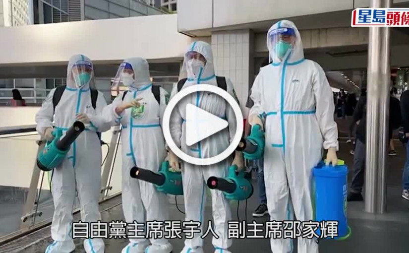 (視頻)疫情消息|自由黨中環天橋噴量子抗菌塗層 提醒市民注意公眾地方衛生