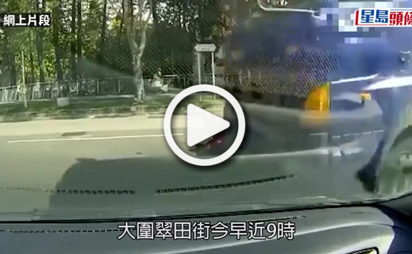 (視頻)交通意外|大圍電單車與泥頭車相撞 鐵騎士人仰車翻