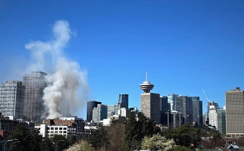 溫哥華警方要求駕車人士和行人繞行煤氣鎮地區,運輸聯網(Translink)的多條行經事發地區的巴士全日改道行駛。味道刺鼻的灰色煙霧午後逐漸在向整個市中心瀰漫,濃煙從幾公里外都能看到。行徑附近的路人戴上口罩走避,半個街區內的能見度一度降到很低。