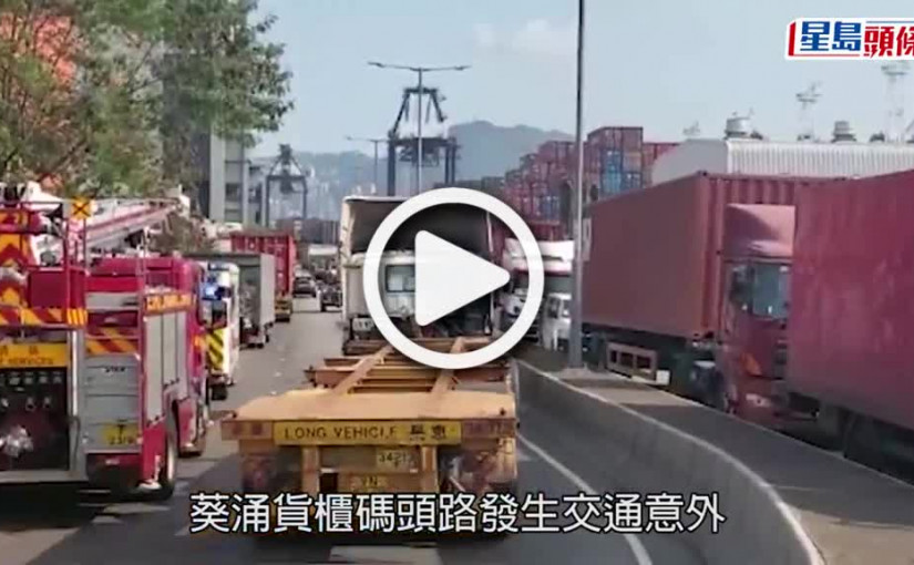 (視頻)貨櫃車翻側|葵涌迴旋處貨櫃車翻側 司機一度被困幸無礙