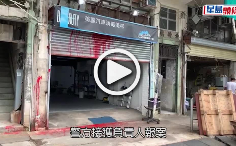 (視頻)刑毀案|疑涉債務糾紛 茶果嶺洗車鋪鐵閘遭淋紅油