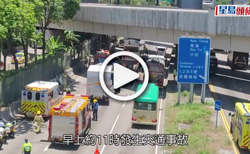 (視頻)交通意外|葵涌道2貨車與巴士相撞 貨車司機受困