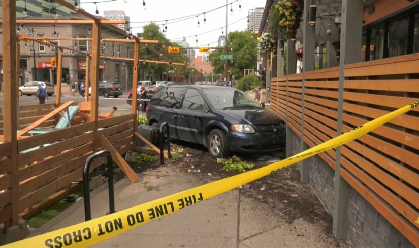 肇事車輛Dodge Caravan撞向Bottlescrew Bills酒吧的露天茶座,撞毀木製茶座並撞倒盆栽植物。