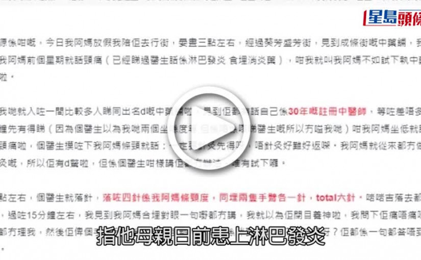 (視頻)針灸休克|葵芳婦人針灸後休克兼半身癱瘓 中醫出事後上白車追收$470診症費