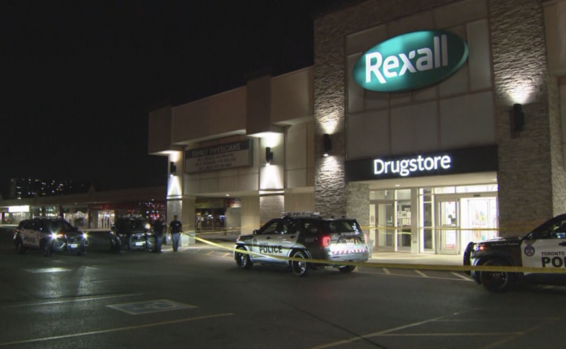 6時剛過,Keele Street 交 Densley Avenue附近又有一間藥房遭一名男子持槍搶劫。嫌犯乘車逃離了現場,最後被人見到時沿Keele Street南向駛離。