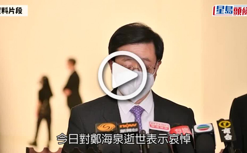 (視頻)鄭海泉離世|李家超哀悼鄭海泉逝世 讚揚致力貢獻社會