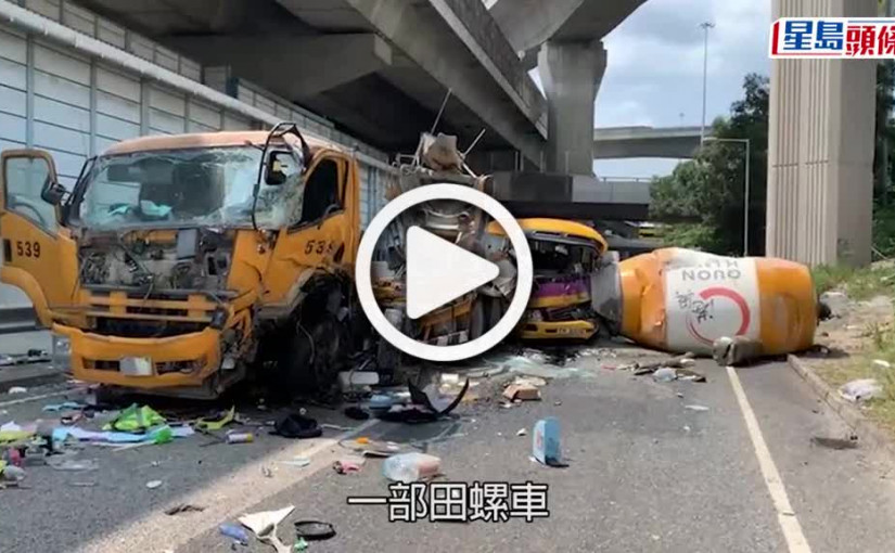 (視頻)嚴重車禍|青沙公路田螺車飛落橋底撞校巴 田螺車司機送院亡
