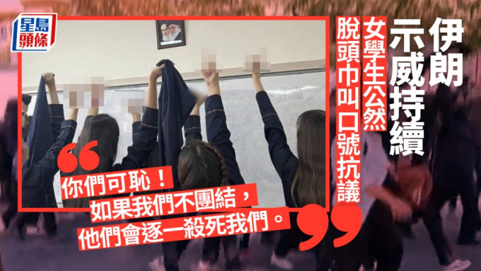 伊朗女學生脫頭巾抗議。