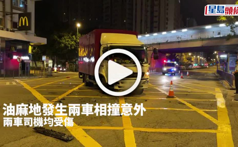 (視頻)交通意外|衞理道十字路口港鐵工程車與貨車相撞 2司機俱傷