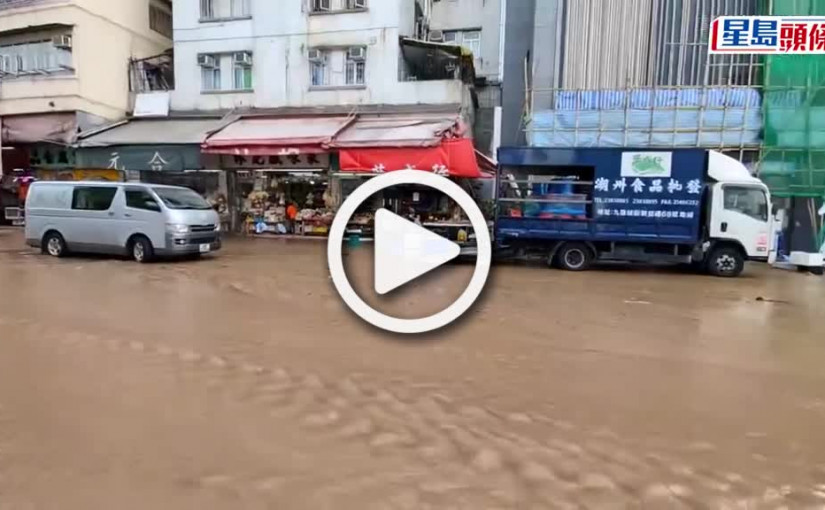 (視頻)爆鹹水管|九龍城街市對出成澤國 衙前塱道湧大量泥沙水深1呎
