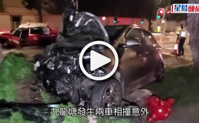 (視頻)交通意外|的士撞私家車呈「大分瓶」 車頭盡毀兩人傷