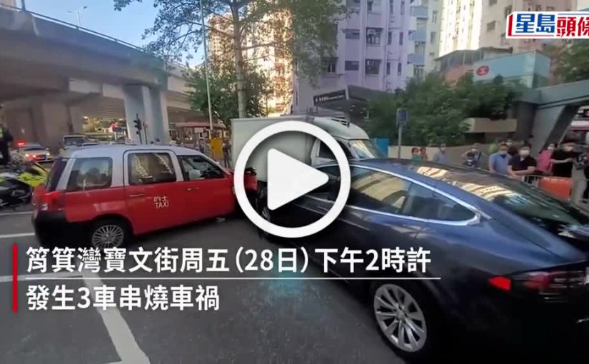 (視頻)交通意外|筲箕灣3車串燒車禍 至少4人傷