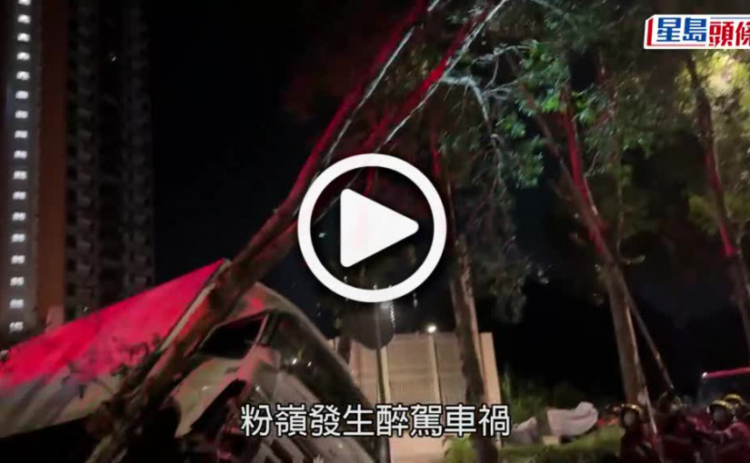 (視頻)粉嶺貨車撼壆撞塌樹傾側「牙煙」 司機吹波「爆錶」揭有醉駕前科